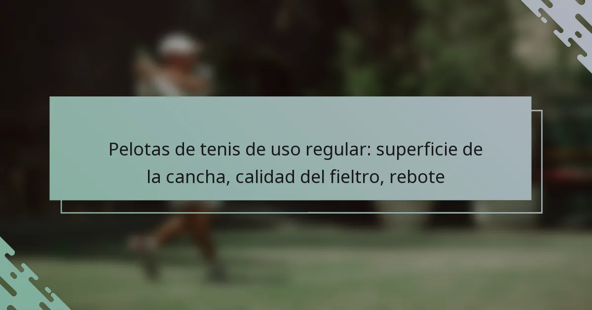 Las pelotas de tenis de uso regular están diseñadas principalmente para su uso en superficies de cancha más suaves, como arcilla y césped. Estas pelotas presentan un fieltro más ligero y están optimizadas para un juego más lento, lo que las hace menos adecuadas para canchas duras, donde pueden desgastarse más rápidamente.
