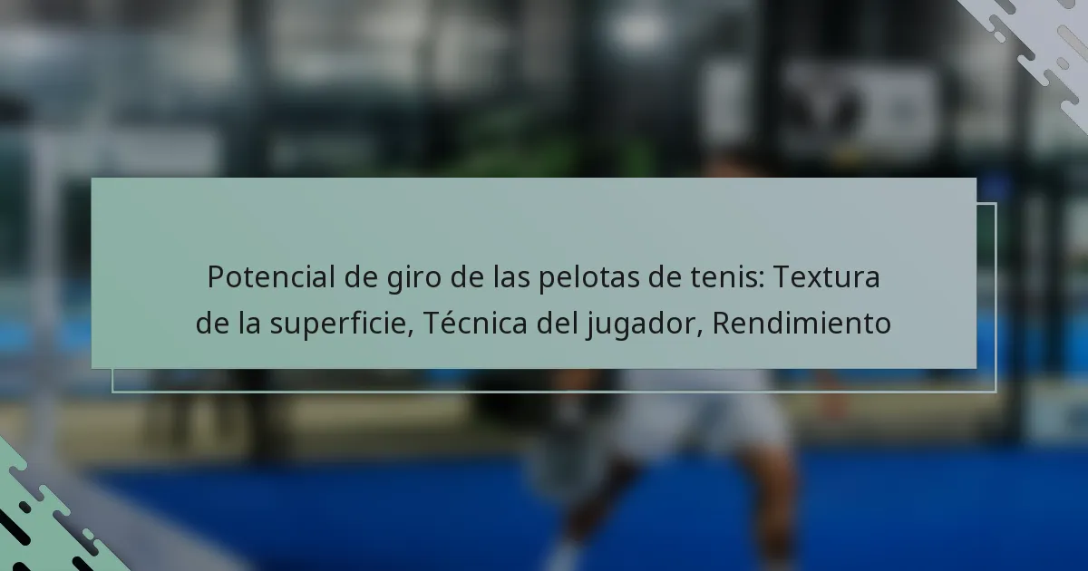 El potencial de giro en tenis está influenciado por varias métricas de rendimiento, incluyendo la tasa de giro, la textura de la superficie y la técnica del jugador. Estos factores impactan colectivamente el juego, afectando cómo los jugadores ejecutan los golpes y planifican durante los partidos.