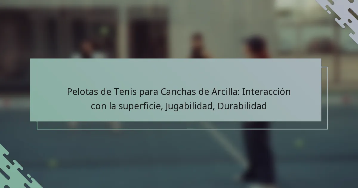 La jugabilidad de las pelotas de tenis en canchas de arcilla se caracteriza por dinámicas únicas de rebote y velocidad que influyen significativamente en el juego. Los jugadores a menudo encuentran que la superficie más blanda de la arcilla afecta cómo interactúa la pelota, llevando a un juego más lento con un rebote más alto en comparación con las canchas duras.